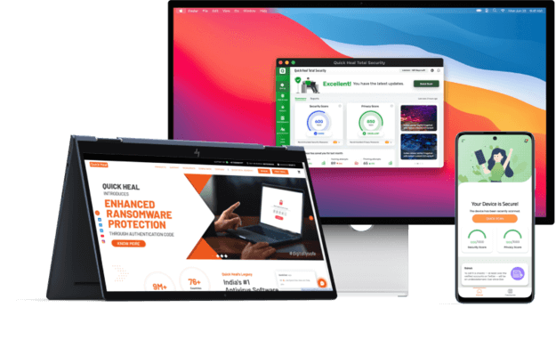 Protect your digital presence with all-in-one security. The most premium antivirus with identity monitoring, safe banking, parental control with privacy and security scores. 360° protection for your device and data Personalized recommendations on digital safety Regulate online content of kids with smart parenting Advanced anti-ransomware protection Safe Pe feature to protect your banking transactions Cloud-Based AI-Powered predictive malware hunting technology for protection against Protect your devices against malware and ransomware attacks Get personalized recommendations on your digital safety Smart data backup with easy recovery and restore facility Safeguard from phishing attempts with regular scans and updates Secure your Wi-Fi and PC from threats when you browse, bank, chat, and email. Tune up and revive your PC performance with Quick Heal’s breakthrough technology. Gives you a safe browsing experience and blocks risky sites Get personalized recommendations on digital safety Detects malware, viruses, worms, trojans, and spyware attacks Blocks virus infections that try to infect computer programs Reliable security created to protect your Mac against zero-day threats, malicious software, spam and other online threats. Automatic updates secure your Mac from latest threats without slowing it down. Fast and highly responsive Virus Protection. Browsing Protection and Phishing Protection to keep malicious websites at bay Smooth email protection monitors email traffic for malware Scan My Mac allows you to choose between a full system or a customized virus scan Macbook Tracking facility Protect your digital presence with all-in-one security. The most premium antivirus with identity monitoring, safe banking, parental control with privacy and security scores. Multiple Scan options for your device Checks if you Wi-Fi is secure Proactively scan apps for threats before and after downloads Add an extra layer of security to your phone. Lock all your apps I can Renew my Quick Heal License promptly, even after office hours. Surprised at the eagerness