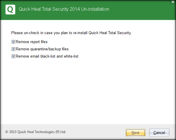 Step 2: Click Uninstall Quick Heal from Start-Programs-Quick Heal group.