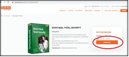 Step 1: Download the latest software of Quick Heal from the link: https://www.quickheal.co.in/installer