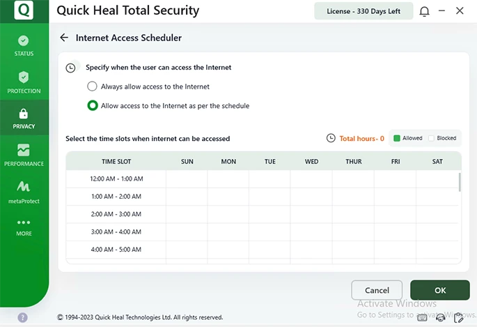 Con el Programador de Acceso a Internet, puedes establecer franjas horarias para el acceso a Internet.