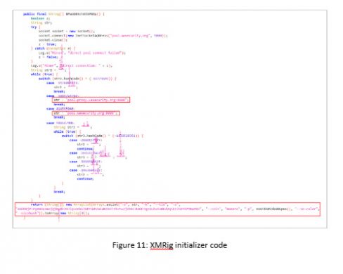 Figure 11 illustrates the method NMuU8KNchX5bP8Oy(), which constructs the command-line arguments required by the XMRig miner for execution. It attempts to connect directly to the Monero mining pool at pool.uasecurity.org:9000, or alternatively to a proxy pool at pool-proxy.uasecurity.org:9000, depending on availability.