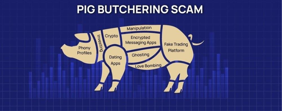 Pig Butchering Scam also known as a “Sha zhu pan” scam, is a type of online investment fraud that involves scammers creating fake online personas to lure victims into fraudulent investment schemes.